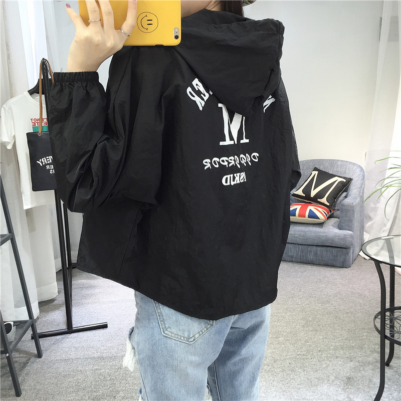 2017韓版寬松短款小外套女學生字母印花學院風連帽風衣休閑百搭潮