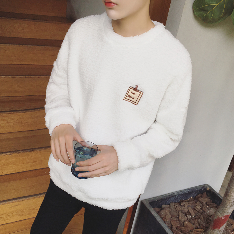 / 男裝新款秋冬港系休閑繡標男士保暖加厚羊羔毛衛衣