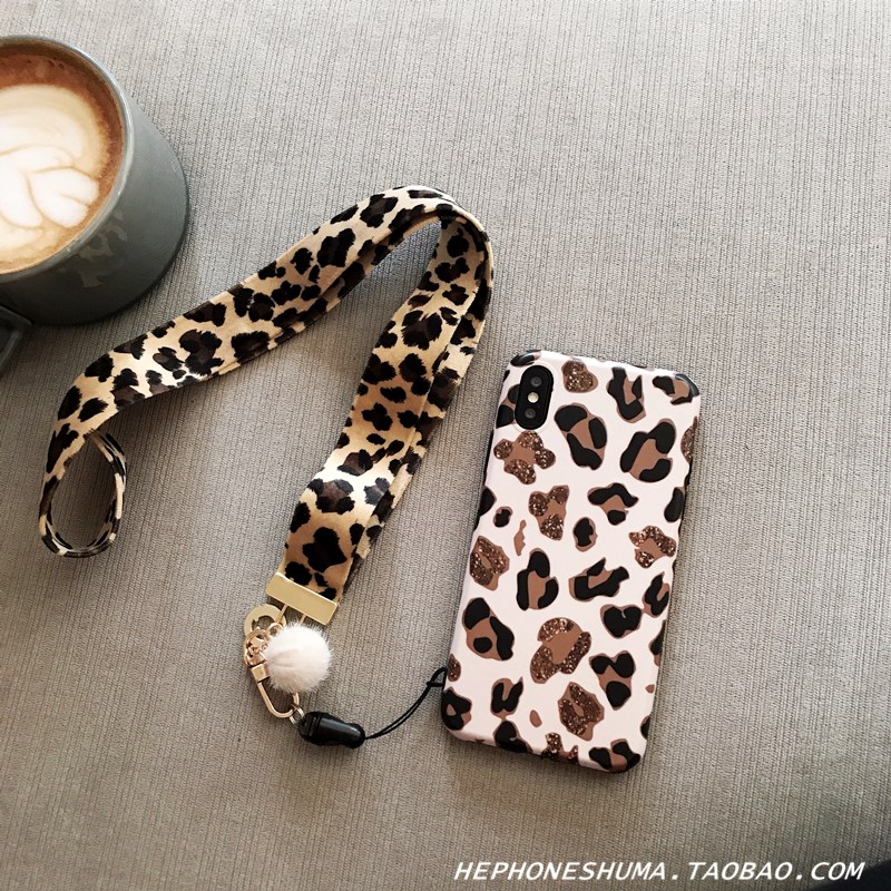 日韓奢華時尚豹紋掛繩蘋果X/7plus/XS/MAX手機殼掛飾長繩子女款潮