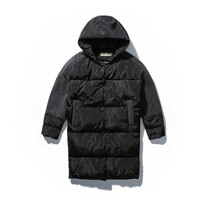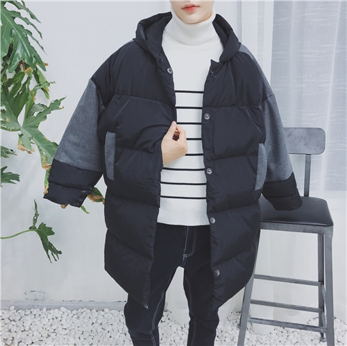手塞棉防水防靜電連帽設計呢料拼接繭型寬松落肩袖加厚棉衣外套