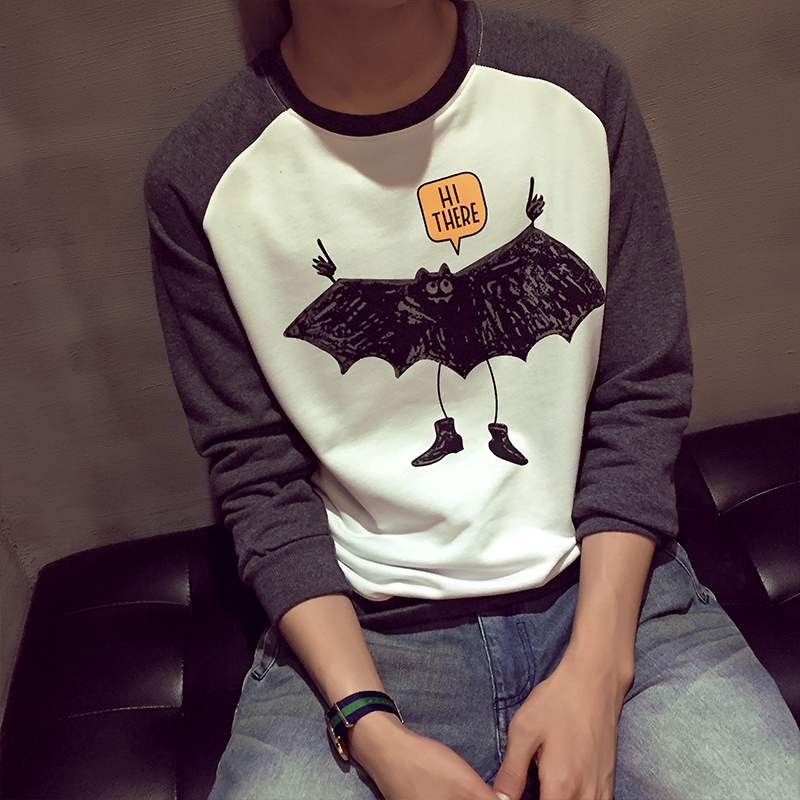 / 春季新款韓版蝙蝠印花卡通男士插肩袖圓領套頭衛衣