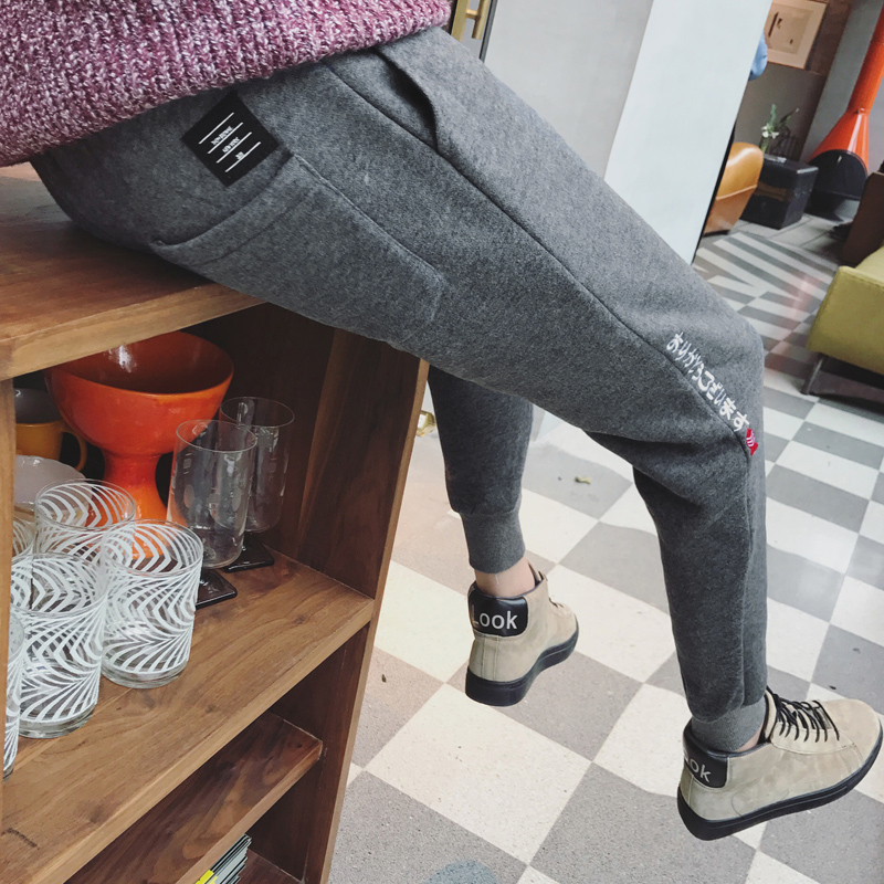 / 原創新款字母刺繡加絨加厚針織衛褲男士小腳休閑褲