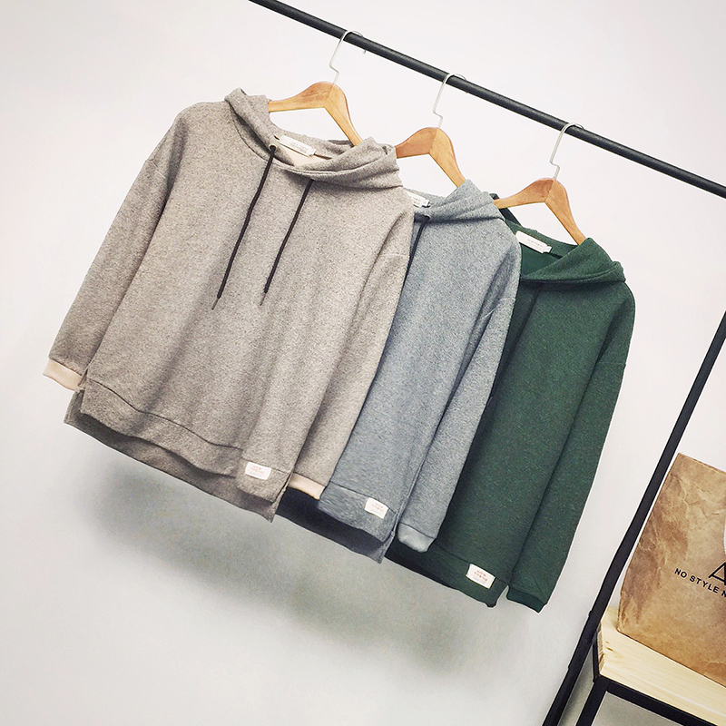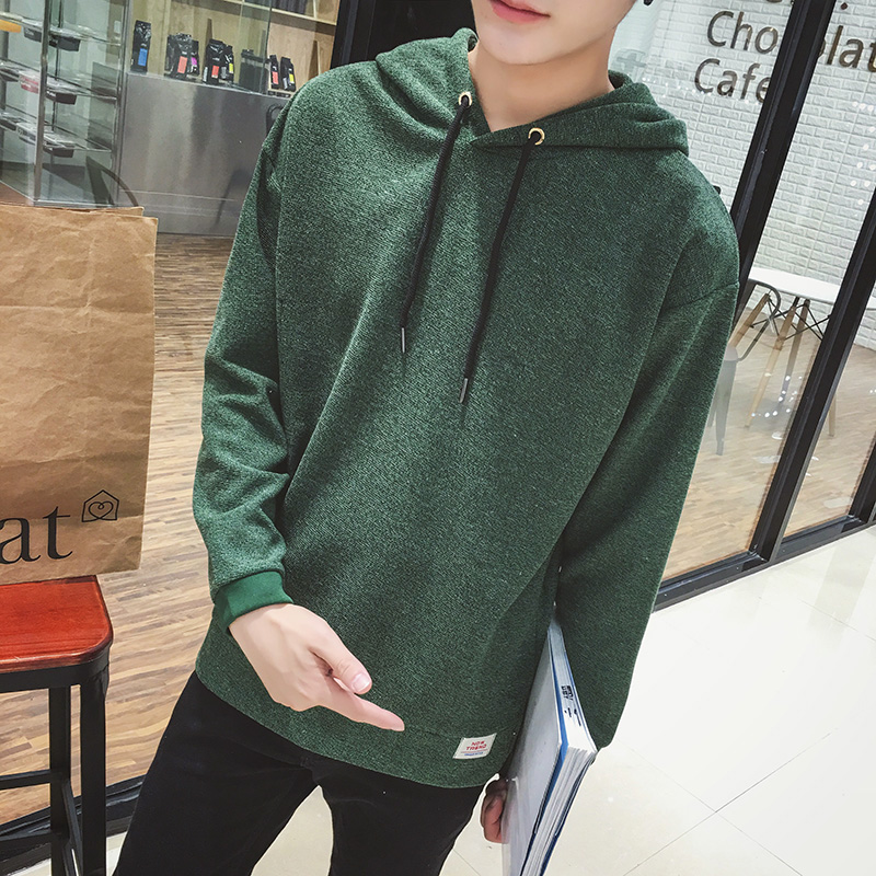 / 新款男裝簡約貼布純色韓版男士寬松連帽套頭衛衣