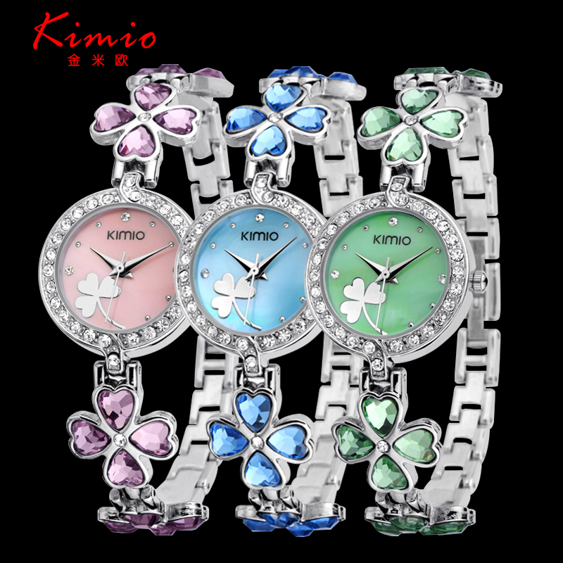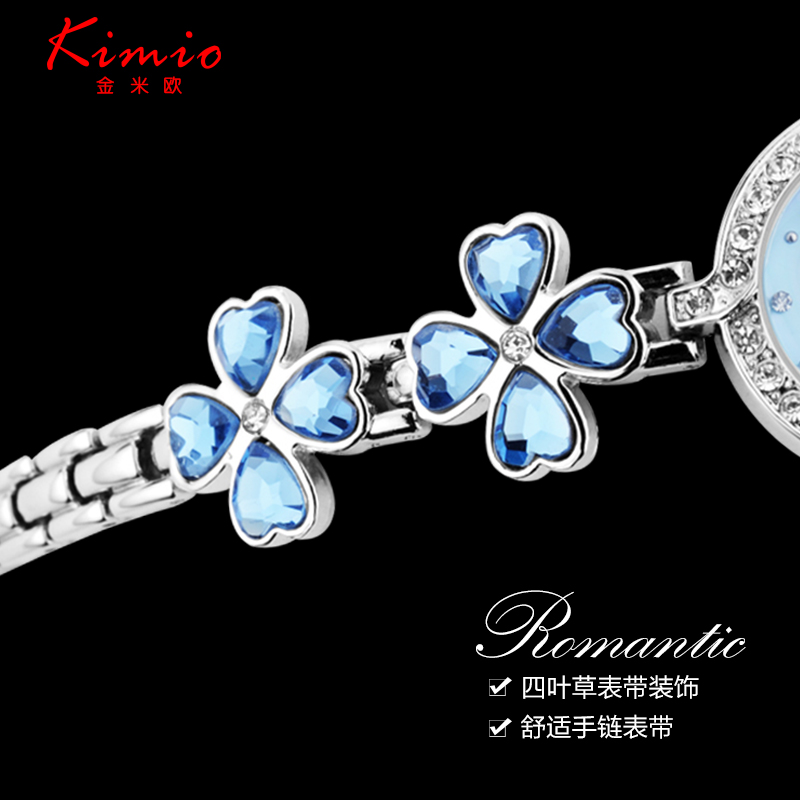 潮流女生四葉草彩鉆鋼帶手鏈表 時尚學生情侶生日禮物石英手表