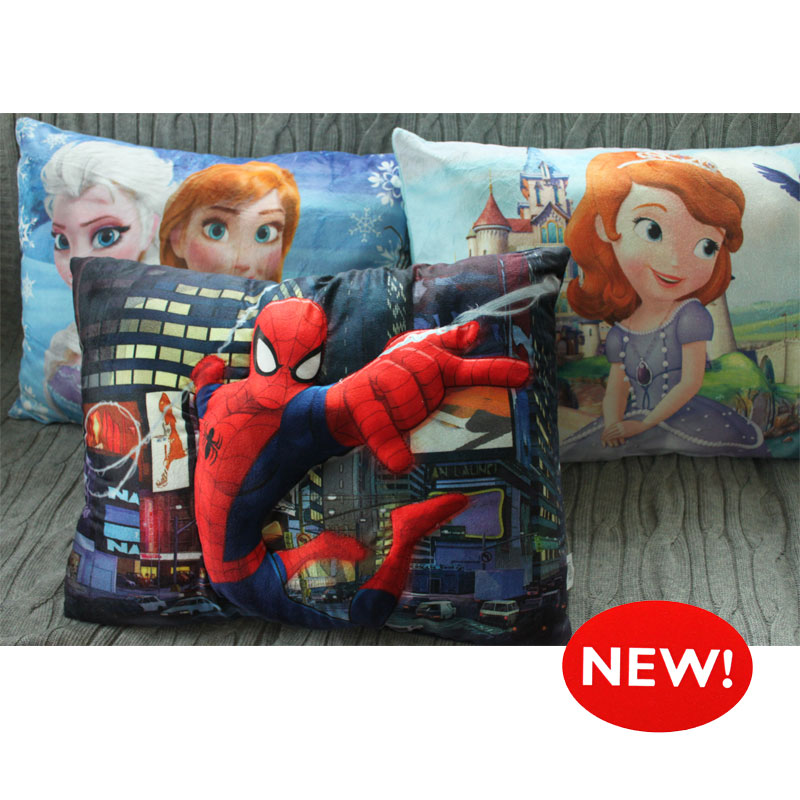 注: 只有蜘蛛俠是表面立體設計,另外兩個是平面。枕芯邊緣有填充物的封口不算瑕疵,蜘蛛俠的腳的部分有點跑色,可能是立體的緣故,請買家看清,外貿尾貨數量有限,追求精致請到專柜購買哦。
