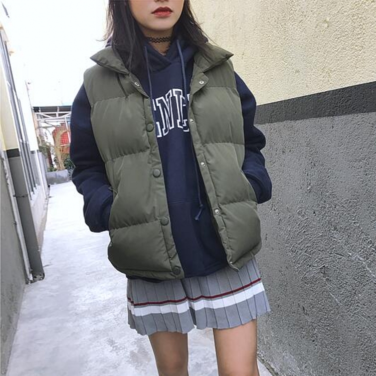 / 冬款韓國學院風棉衣無袖立領保暖口袋馬甲背心面包服棉服女