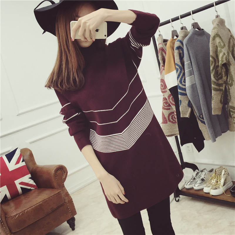 秋冬毛衣裙女套頭中長款高領打底衫針織連衣裙女裝秋裝新款潮