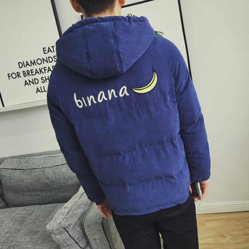 冬裝新款香蕉刺繡大碼加厚港風男士棉衣寬松面包服