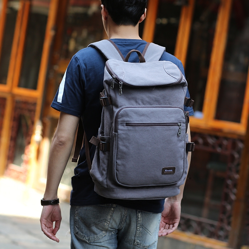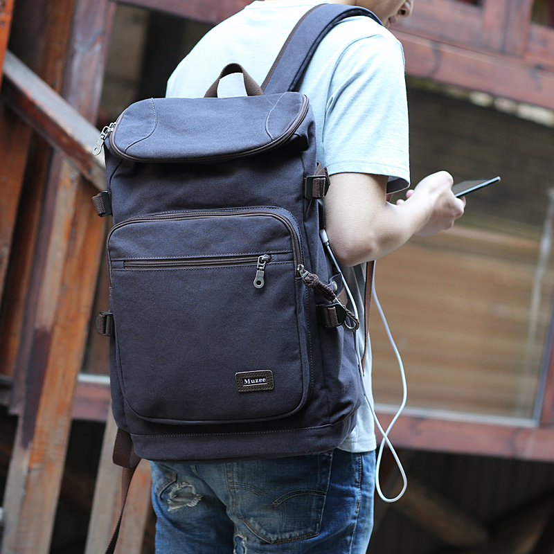 多功能雙肩包男士休閑帆布電腦包戶外旅行包大容量旅游背包