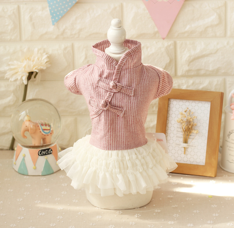 民國の純素連衣裙~古裝風寵物裙子 泰迪衣服比熊春夏裝約克夏裝