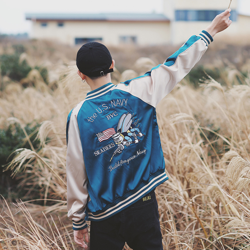 / 男裝最牛逼的刺繡兩面穿棒球領男士情侶夾克外套