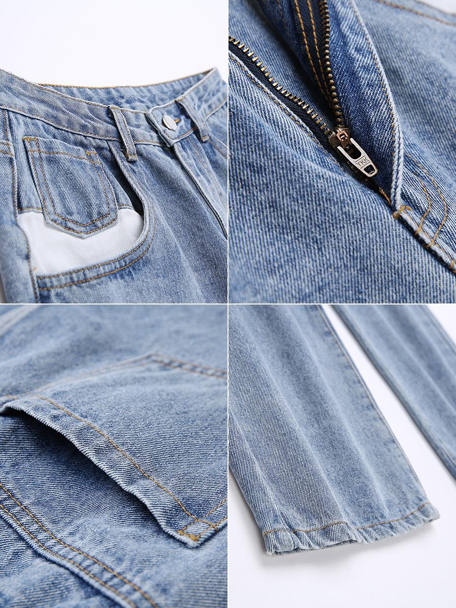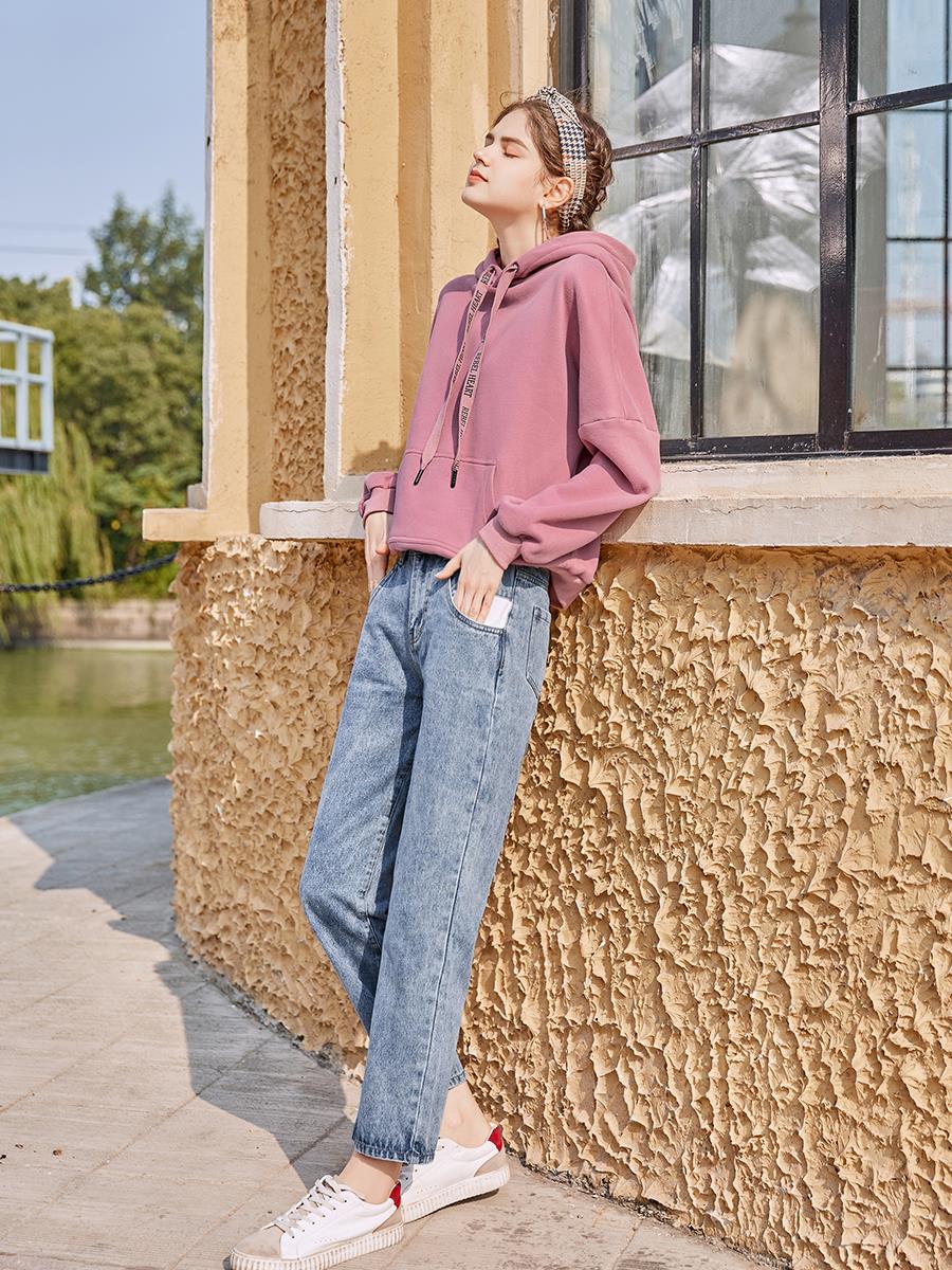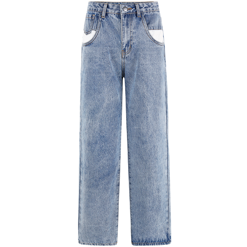 MG小象港風復古牛仔褲女秋冬2018新款寬松顯瘦直筒褲時尚高腰褲子