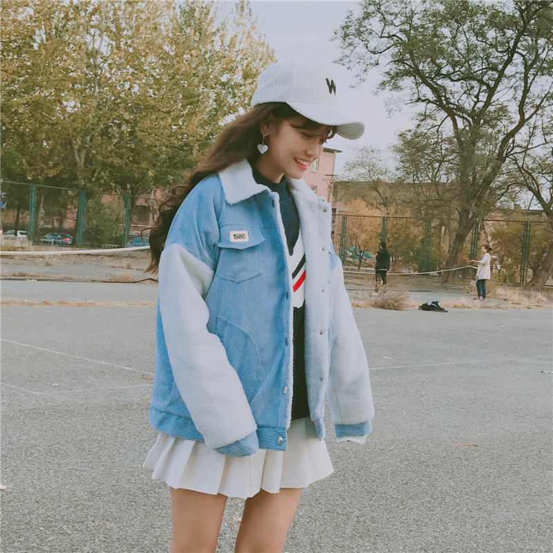 雙層面料,藍色面料是燈芯絨