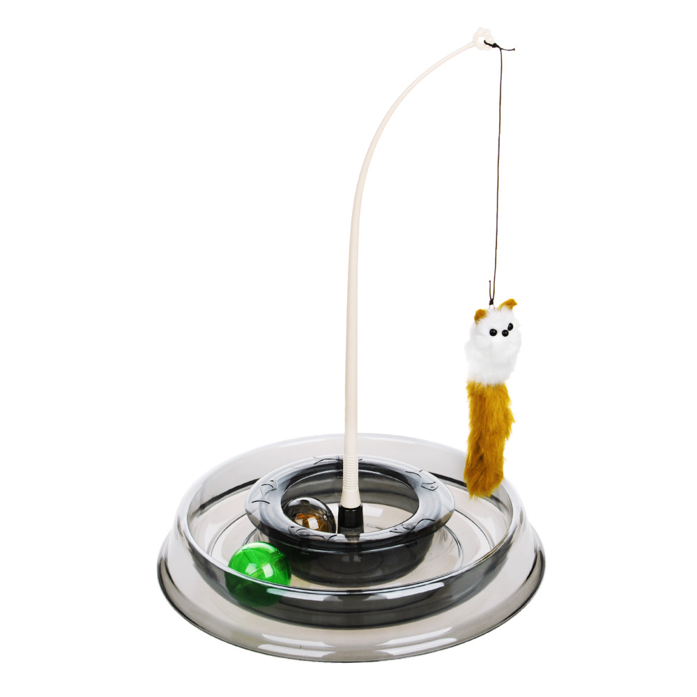寵博士貓玩具圓形轉盤(PS材料,配發聲球)粉色/黃色/灰色