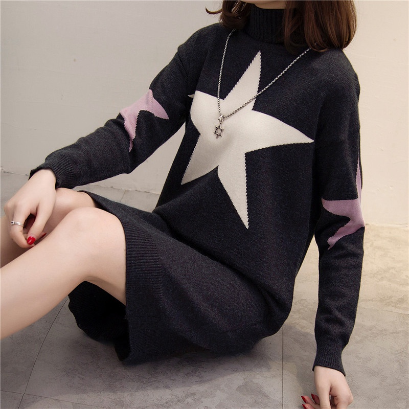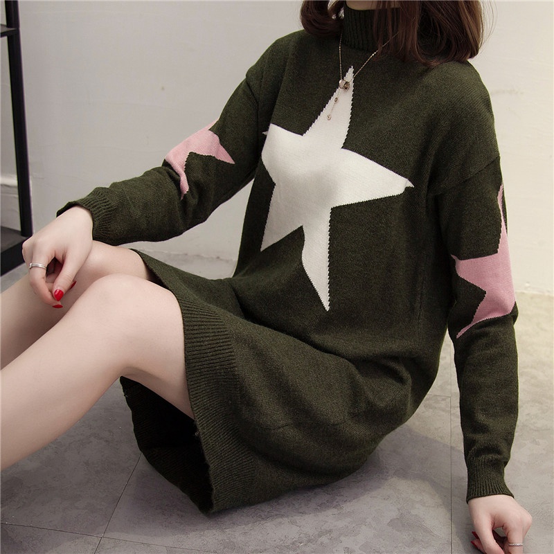 / 針織衫女套頭打底衫上衣長袖韓版外套寬松中長款毛衣女秋冬女裝