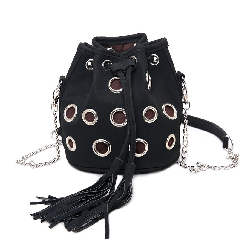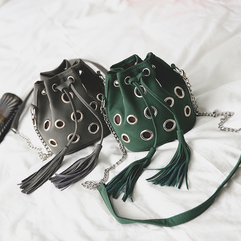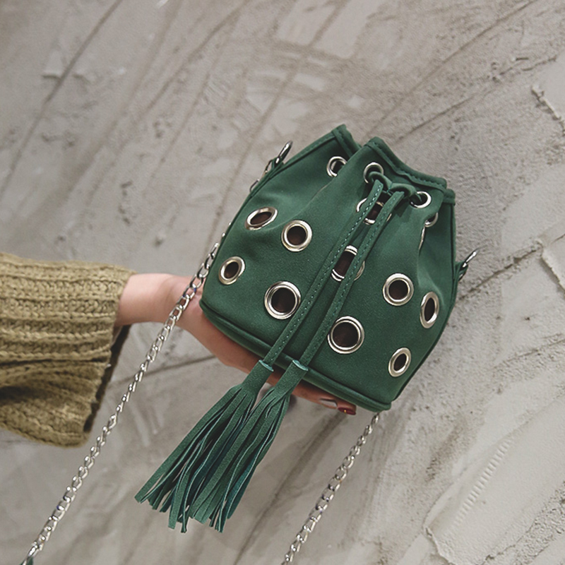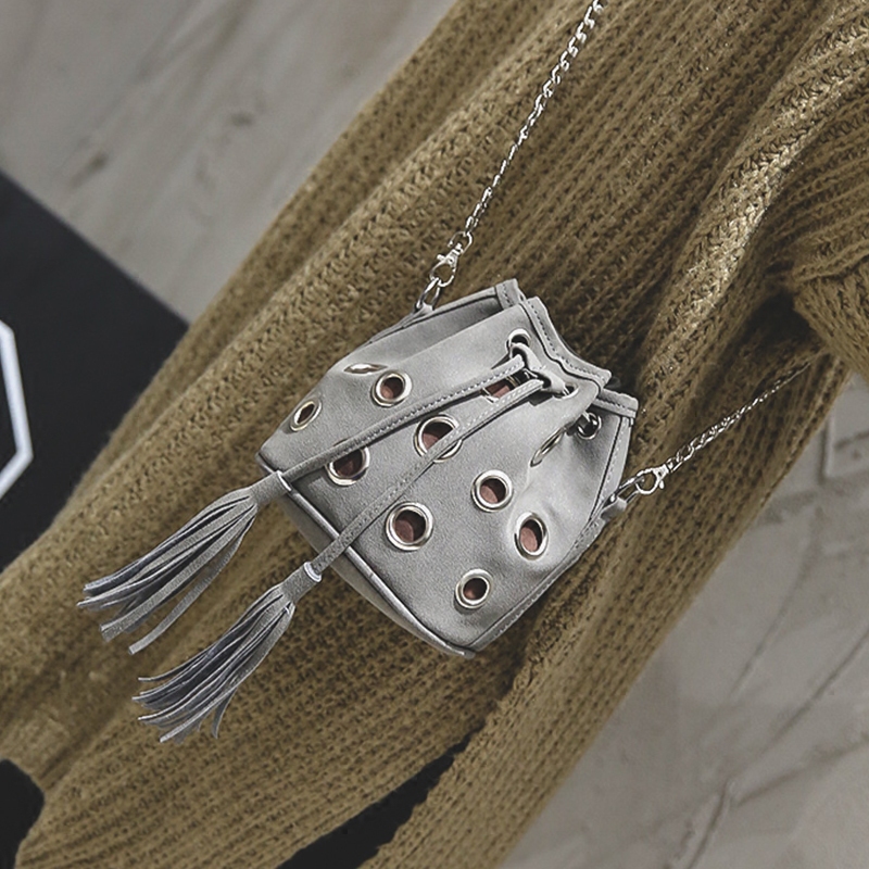 / 新款韓版迷你水桶女包復古磨砂鏈條流蘇斜挎小包時尚單肩包潮
