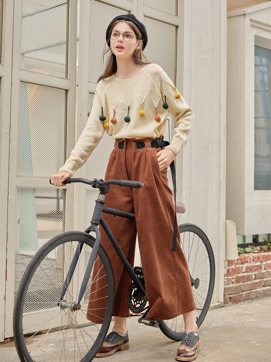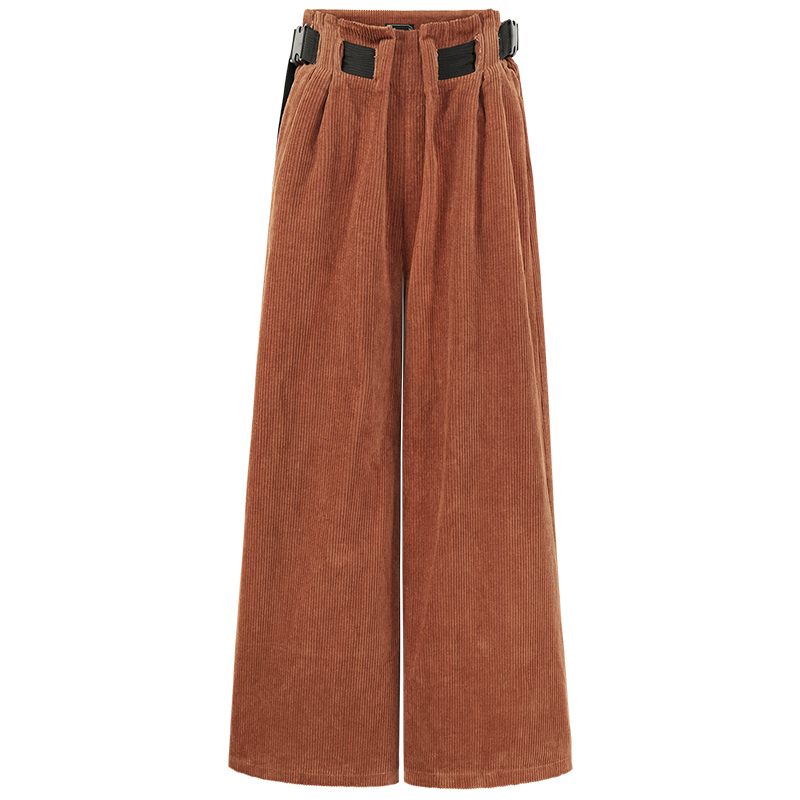 MG小象高腰燈芯絨闊腿褲女港味復古休閑褲秋冬新款寬松顯瘦褲子潮