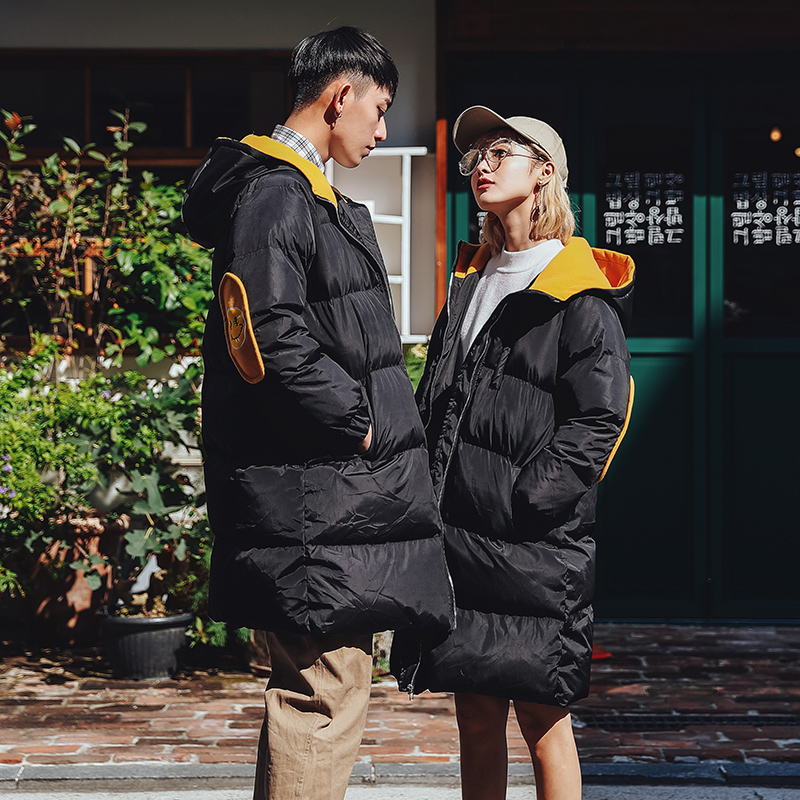 / 新款冬裝港系文藝撞色笑臉加厚情侶棉衣連帽長棉服