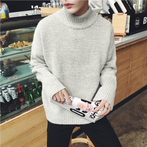 / 男裝韓版冬季半高領純色加厚針織衫套頭寬松毛衣男