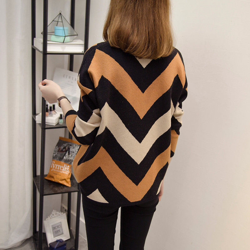 / 長袖打底衫韓版圓領套頭針織打底衫新款潮拼色毛衣加厚外套