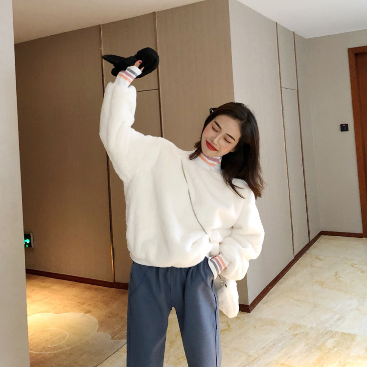 / 新款寬松毛絨加厚套頭衛衣上衣外套毛呢休閑褲呢子長褲女時尚套裝