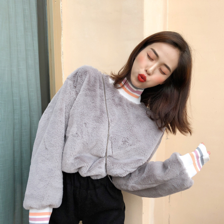 新款寬松毛絨加厚套頭衛衣上衣外套毛呢休閑褲呢子長褲女時尚套裝
