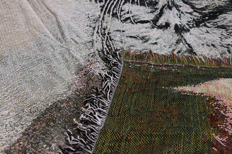 / [白色莫奈]復古做舊風沙皮貓咪純棉流蘇加厚線毯掛毯/沙發毯/蓋巾