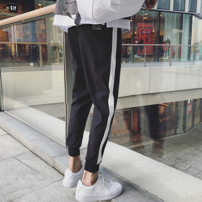 / 秋季褲子男士九分褲韓版國潮小腳潮流休閑褲一條杠束腳百搭運動褲