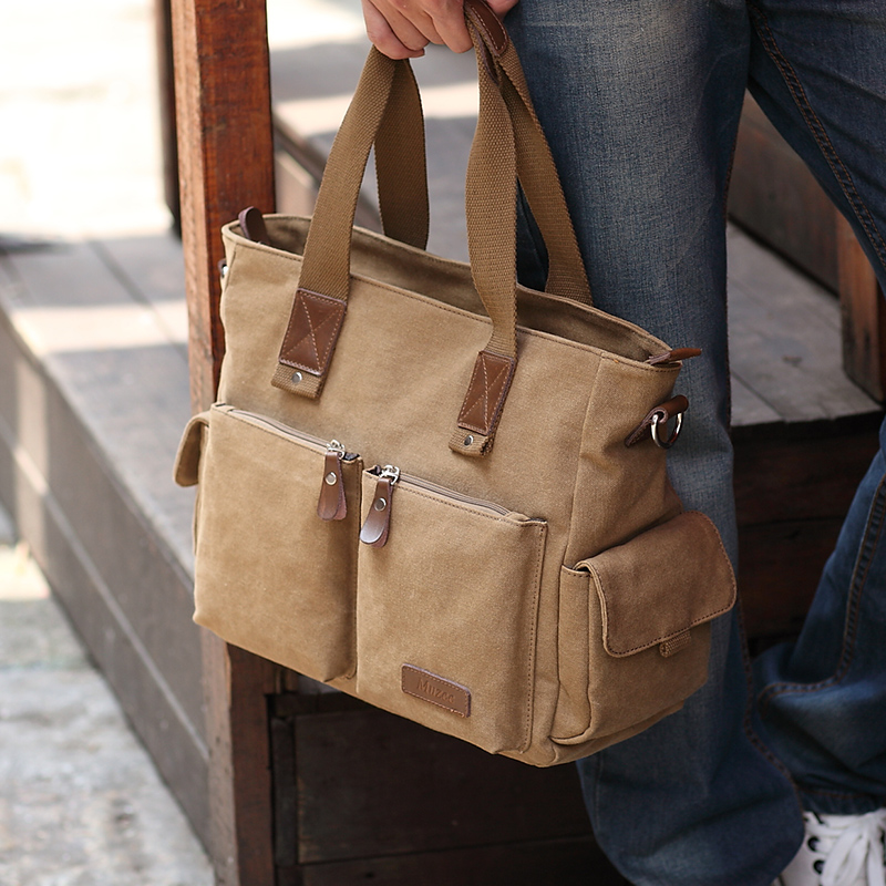 男包手提旅行包商務電腦包休閑帆布包單肩斜挎男士包包