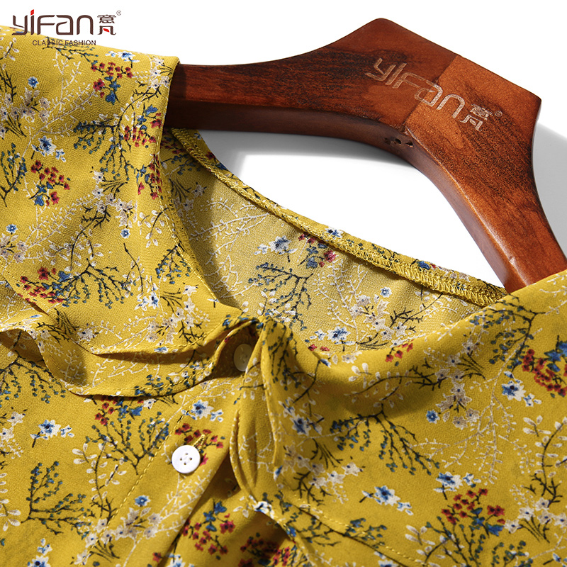 / 春夏韓國甜美小清新碎花荷葉邊娃娃領長袖雪紡襯衫女印花雪紡上衣