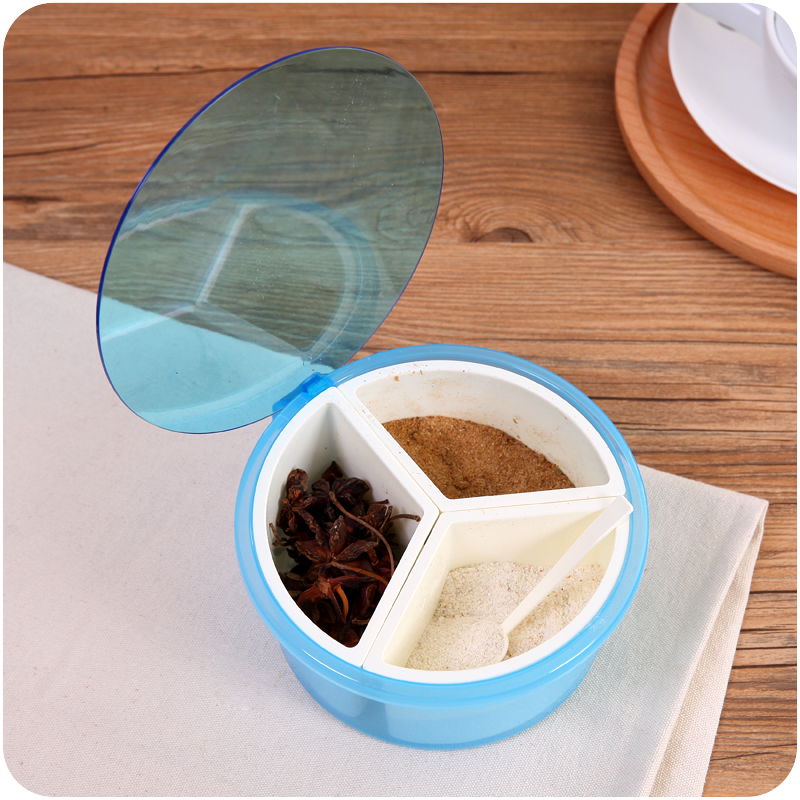 創意調料盒廚房用品調料瓶多用途分隔式三色創意調味盒塑料鹽罐
