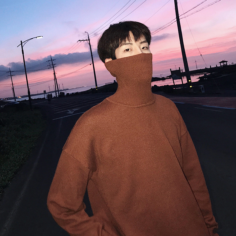 / 文藝男女店秋季寬松高領毛衣潮流純色韓版針織衫精神小伙男裝外套