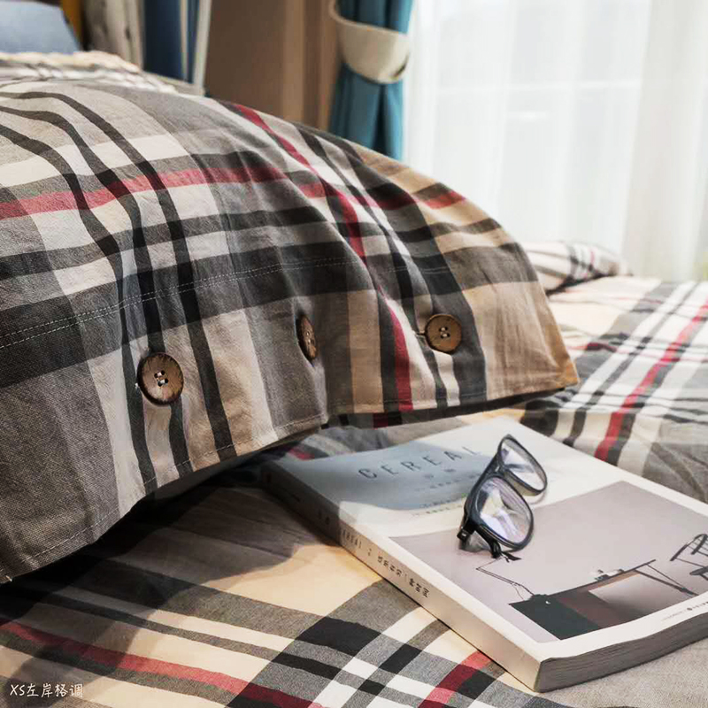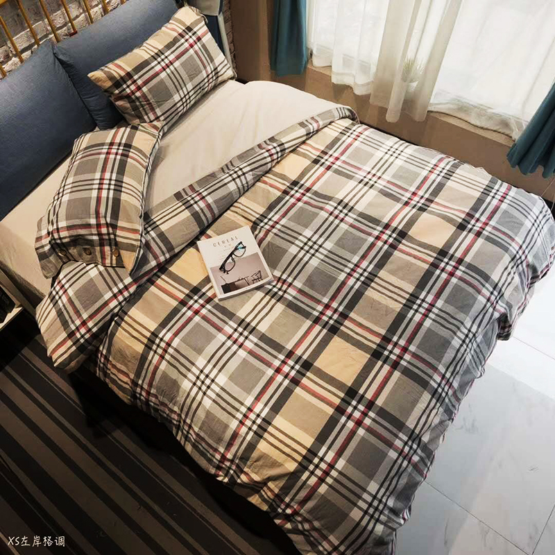 [白色莫奈]新品純棉色織60支北歐風水洗棉四件套簡約床上套件