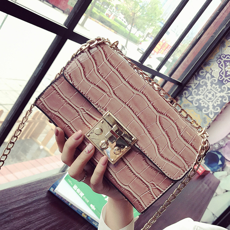 包包女新款潮鱷魚紋復古小方包鏈條單肩女包韓版百搭斜挎小包