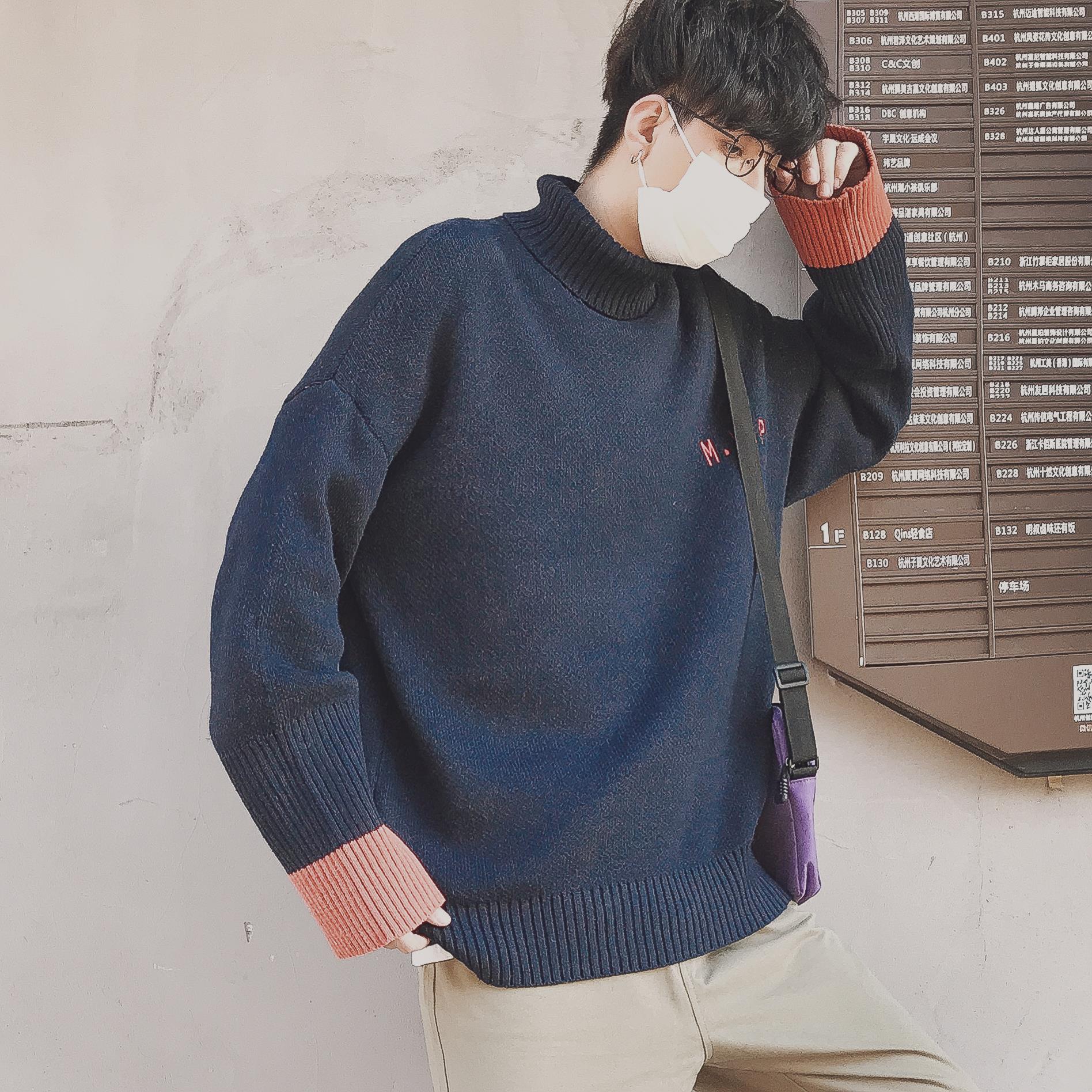 文藝男女店高領港風寬松衣服秋季休閑針織衫潮流男裝外套男士毛衣