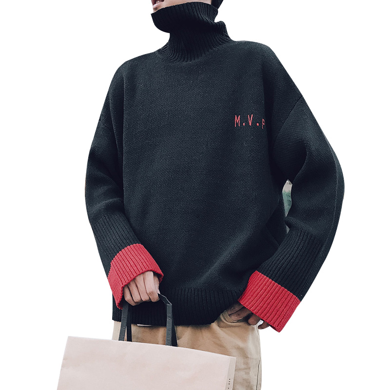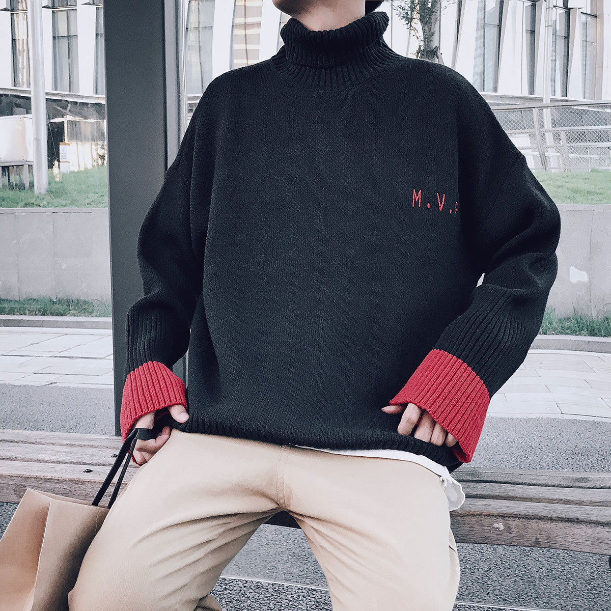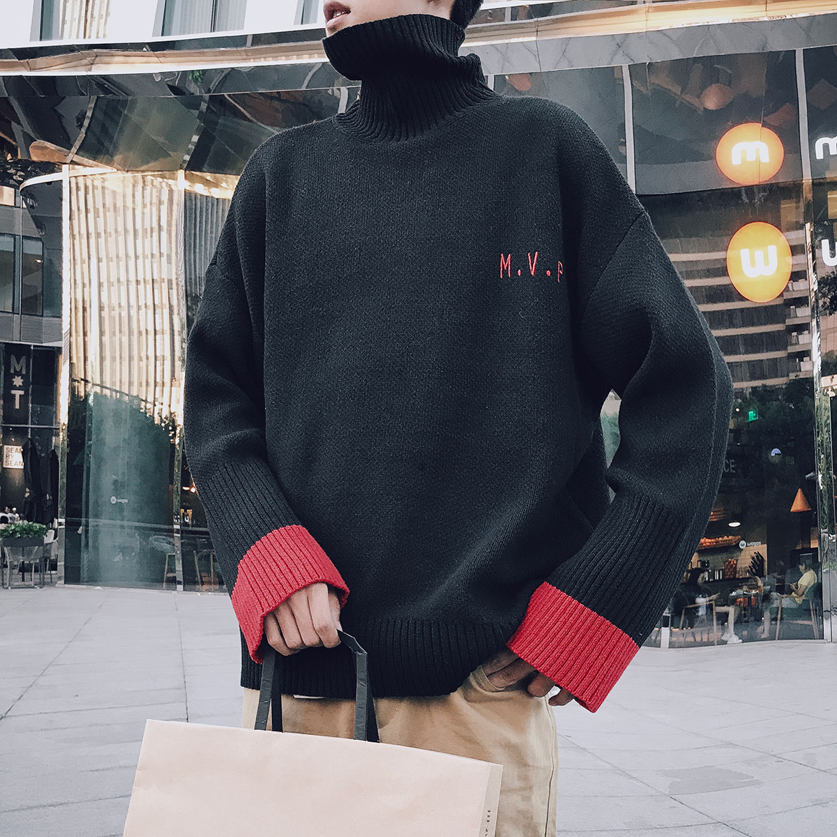 / 文藝男女店高領港風寬松衣服秋季休閑針織衫潮流男裝外套男士毛衣