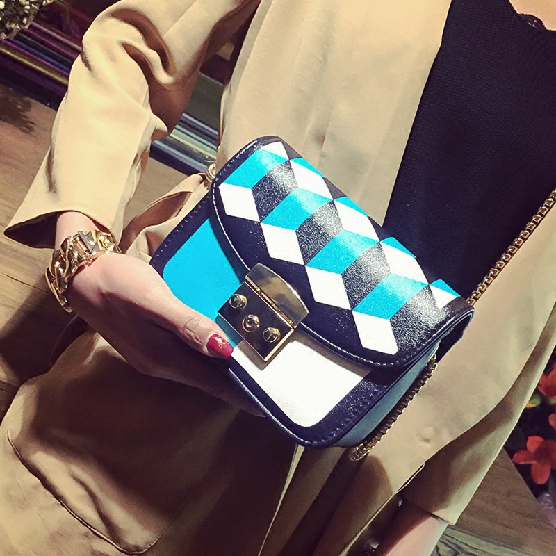 / 包包女新款潮撞色單肩女包小包韓版百搭斜挎包鏈條迷你小方包