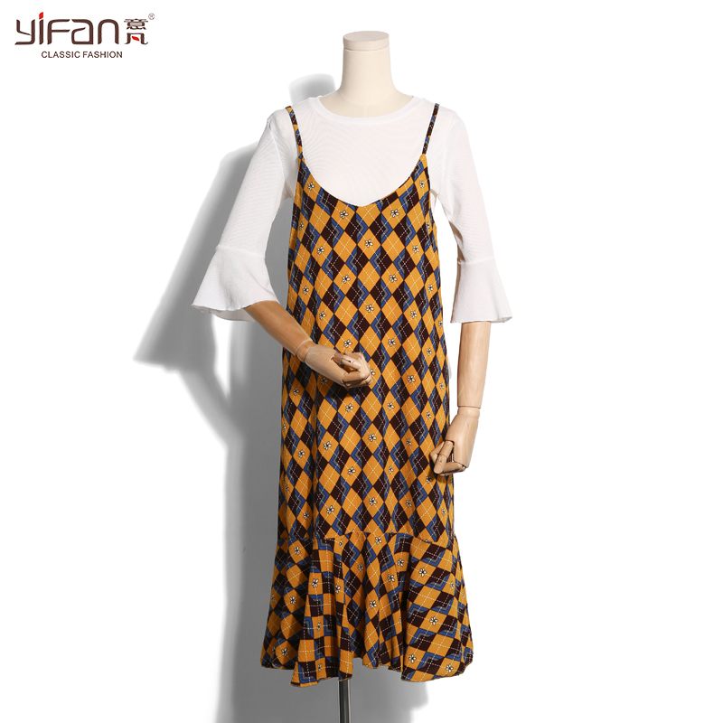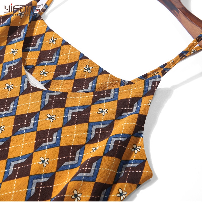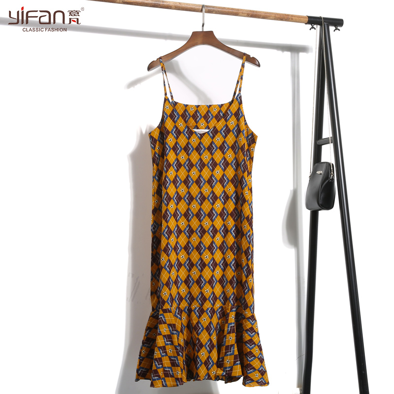 / 早春瑞麗韓版吊帶v領小碎花中長款連衣裙雪紡露背寬松百搭魚尾裙