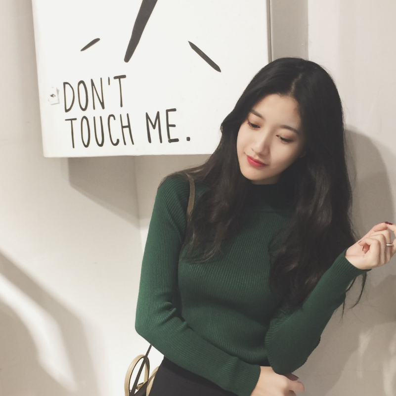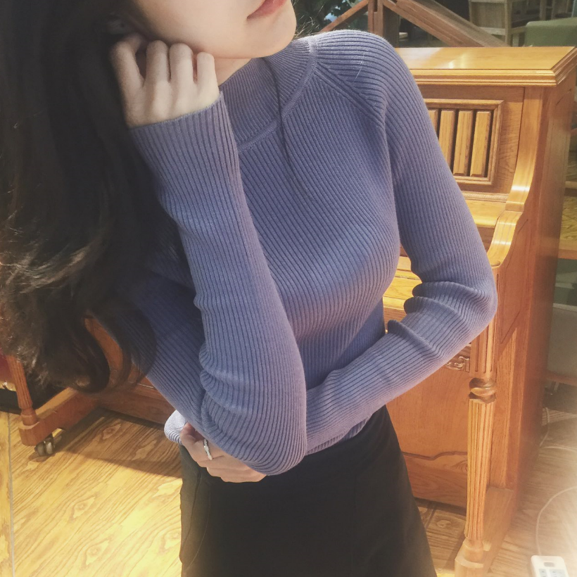 / 韓國秋冬百搭套頭修身半高圓領純色螺紋長袖打底針織衫女