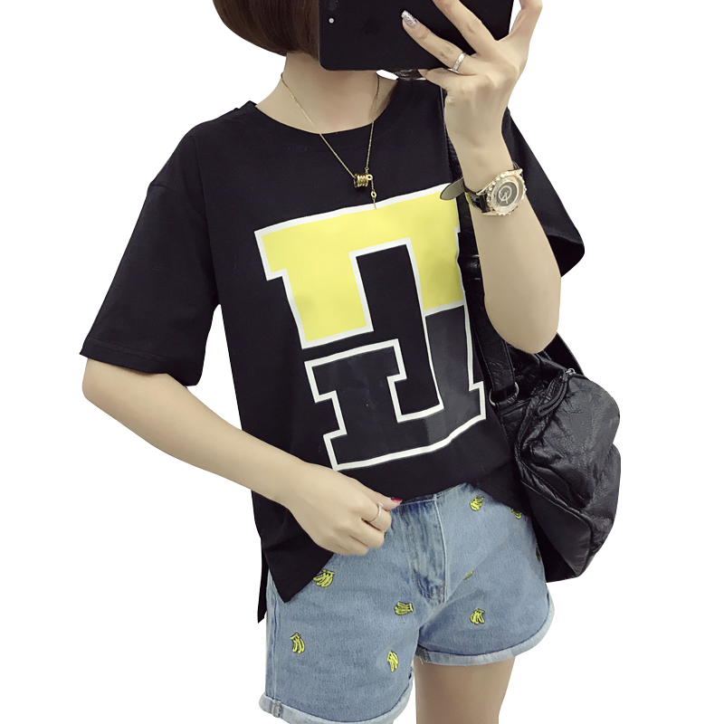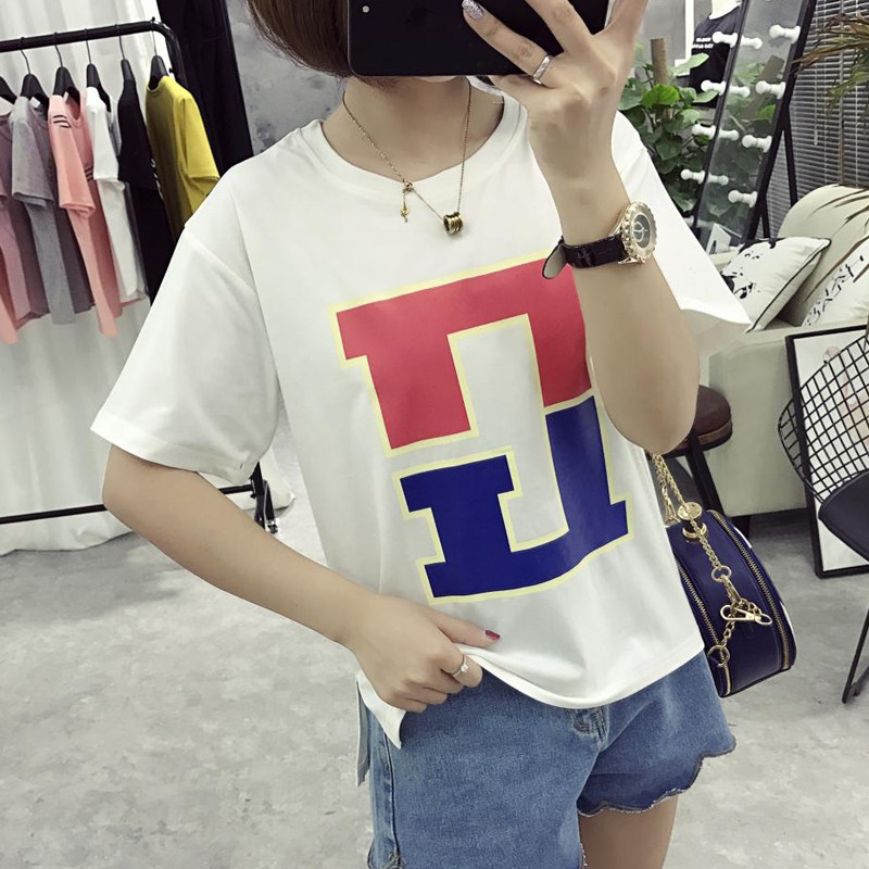 夏裝新款字母T恤女寬松簡約閨蜜裝顯瘦學生短袖上衣潮大碼