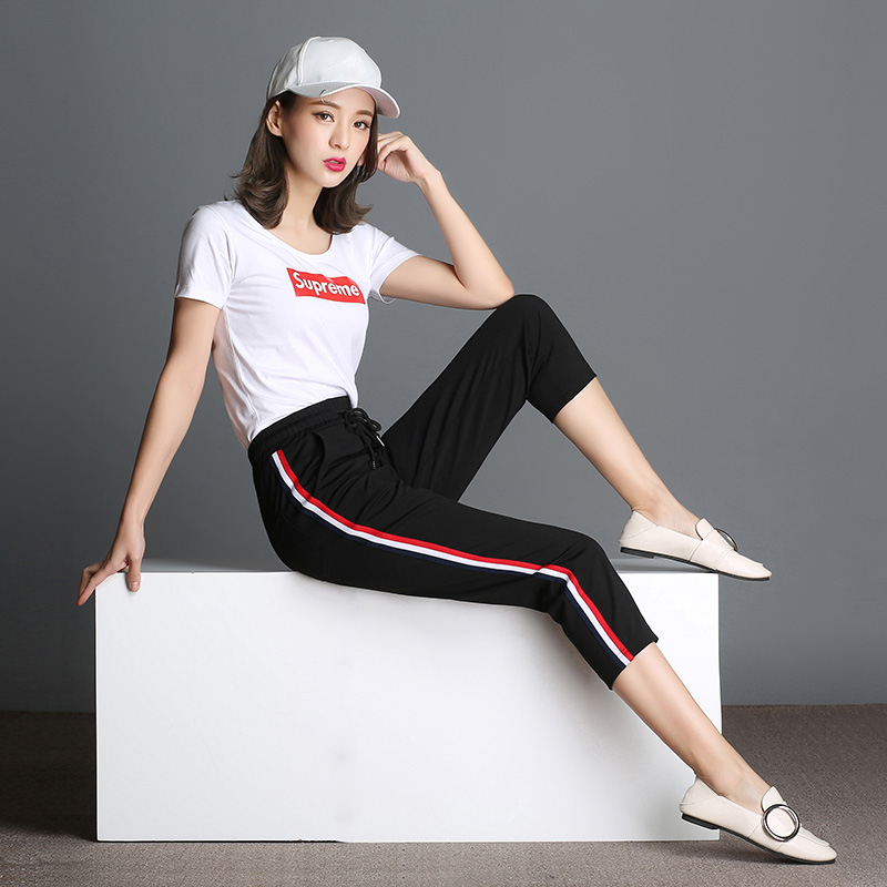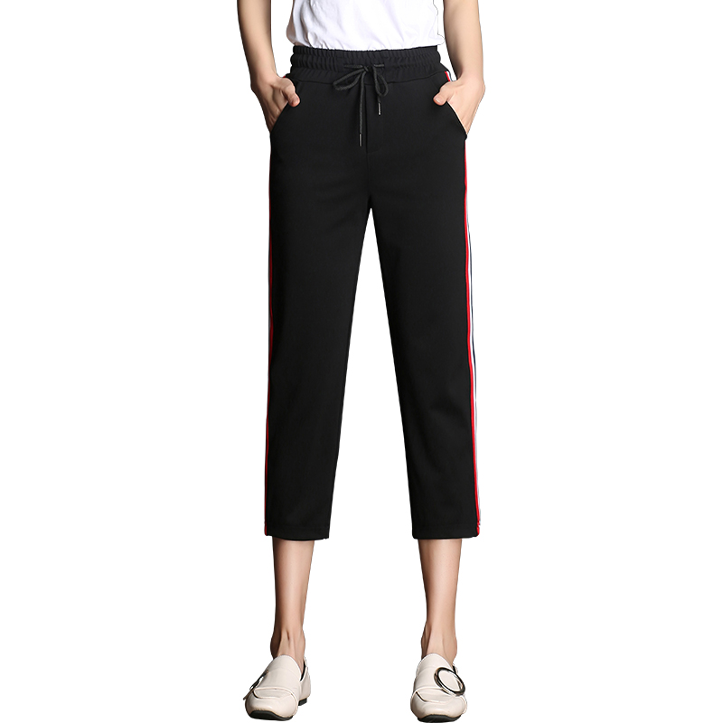 七分褲女小腳褲新款學生夏季百搭直筒褲子韓版條紋運動休閑褲