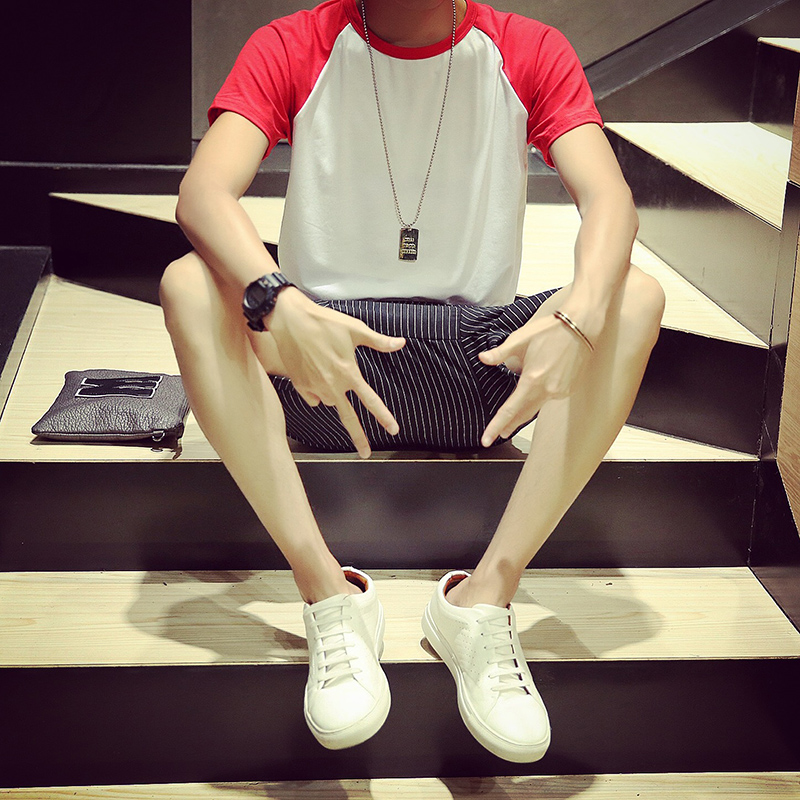 / 夏季新款小清新韓版修身插肩袖圓領男士短袖T恤
