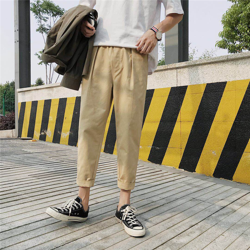 / 秋季純色男士褲子寬松潮流休閑褲百搭九分褲直筒小腳褲ins工裝褲