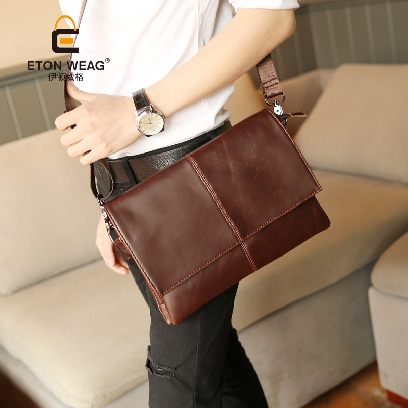 瘋馬皮男士韓版單肩包復古潮流男士文件包休閑iPad斜挎包定型包