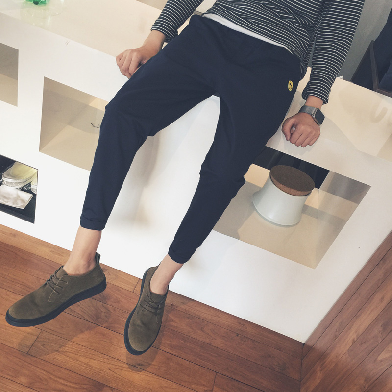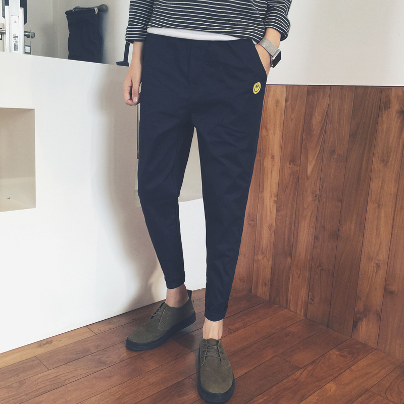 / 男裝新款韓版笑臉刺繡男士休閑修身小腳褲哈倫褲