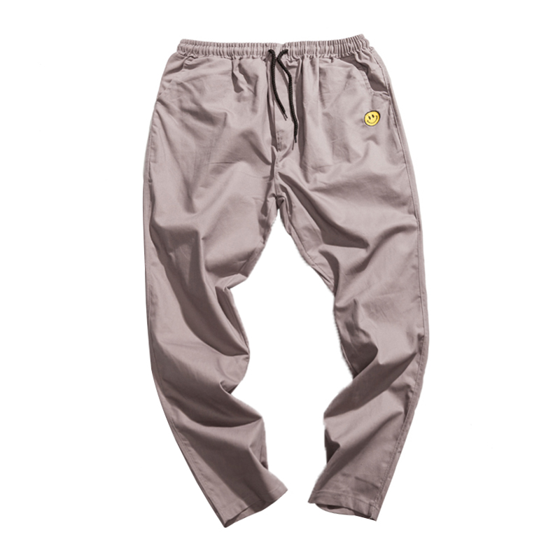 男裝新款韓版笑臉刺繡男士休閑修身小腳褲哈倫褲