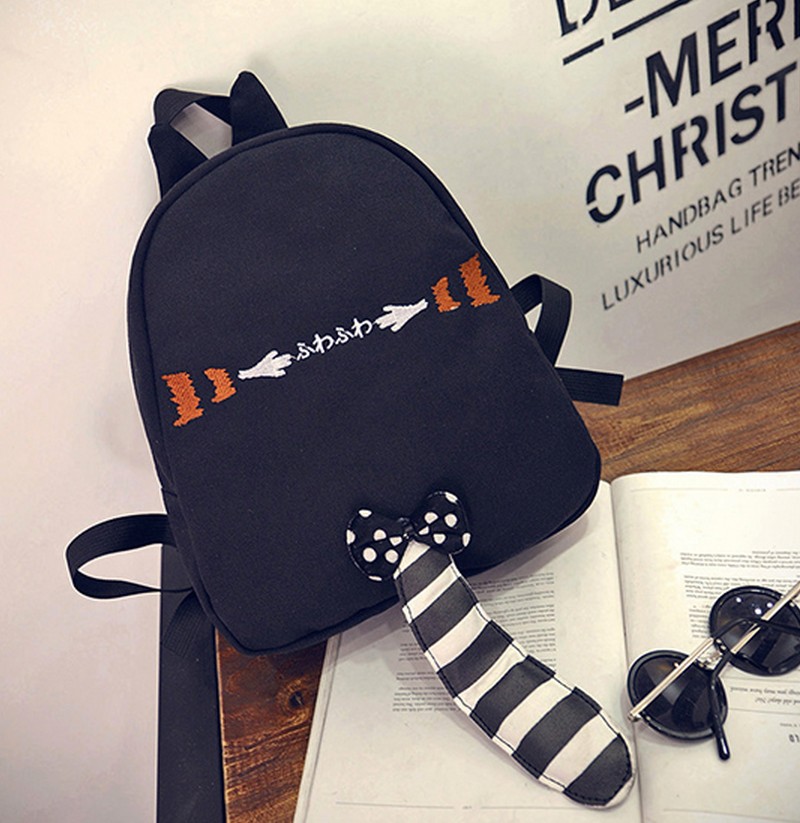 / 日系卡通超萌尾巴耳朵帆布雙肩包個性可愛小背包賣萌女學生書包