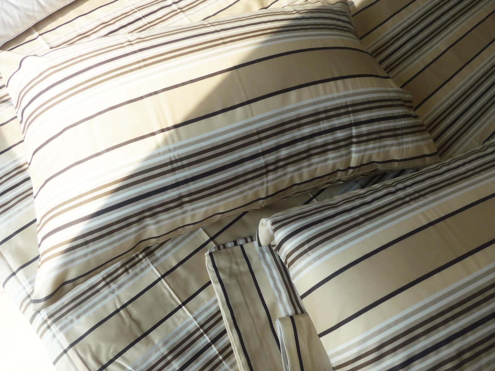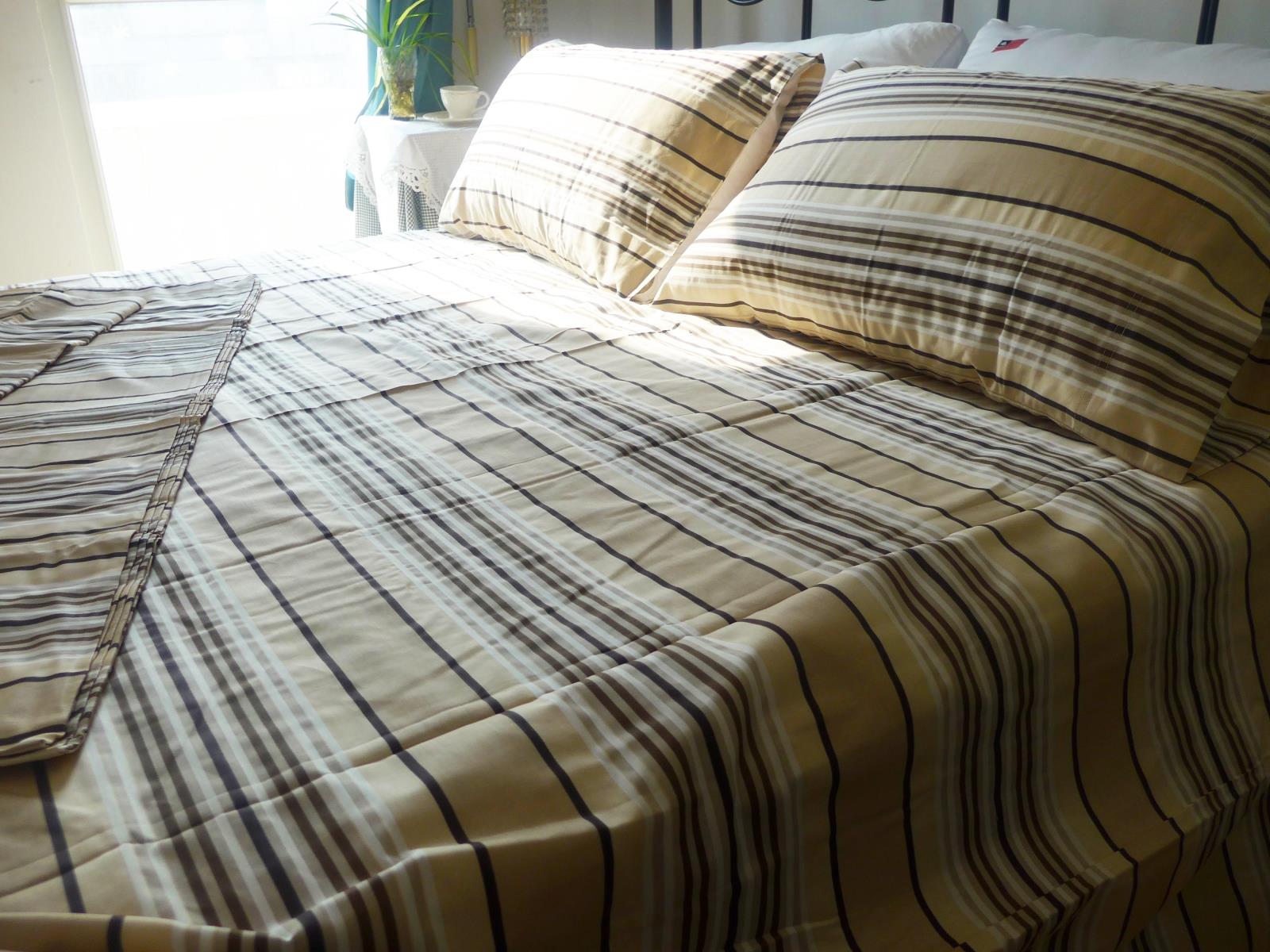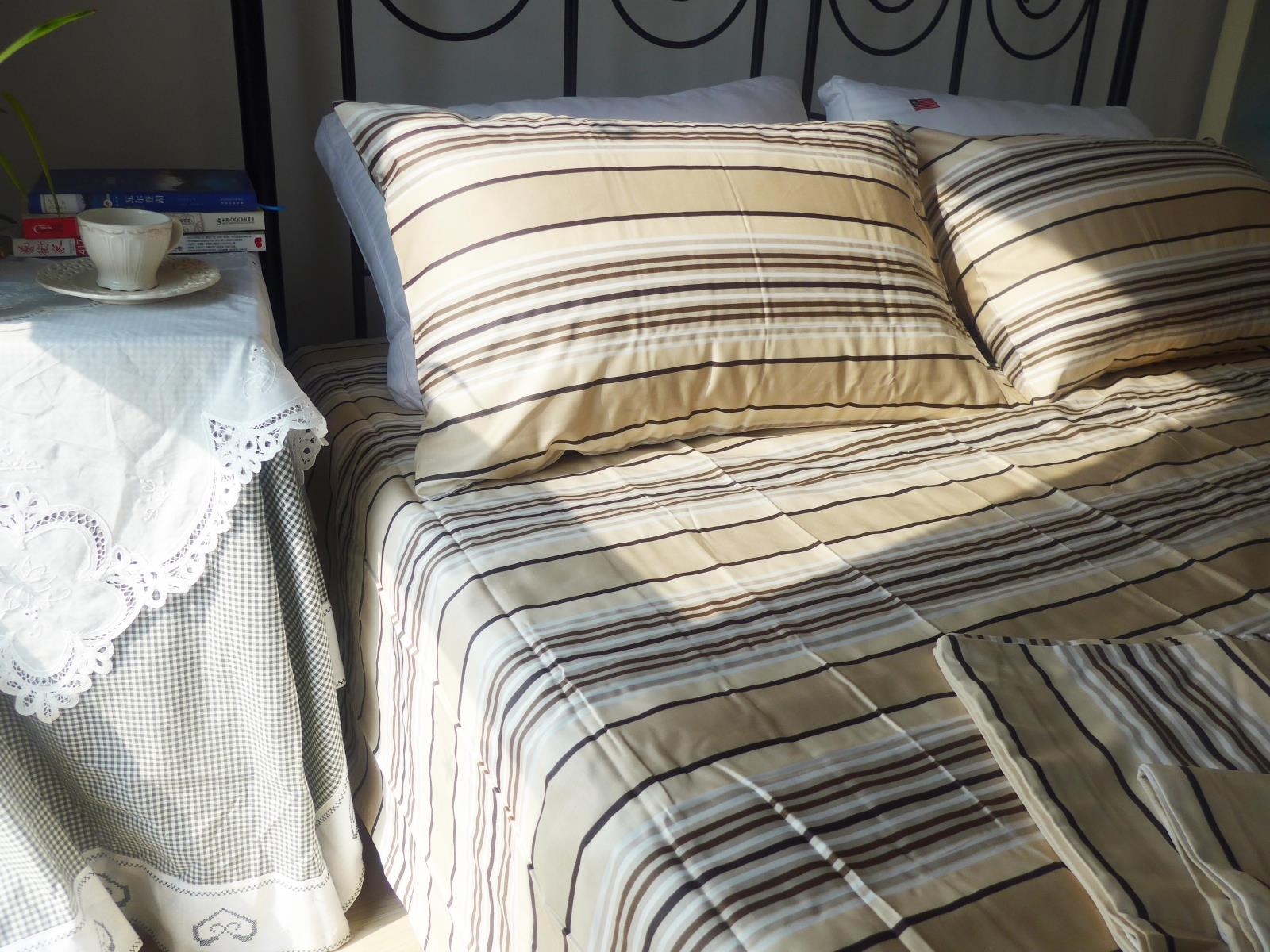 [白色莫奈]特價原單工廠男士長絨棉高支紗簡約條紋床上四件套