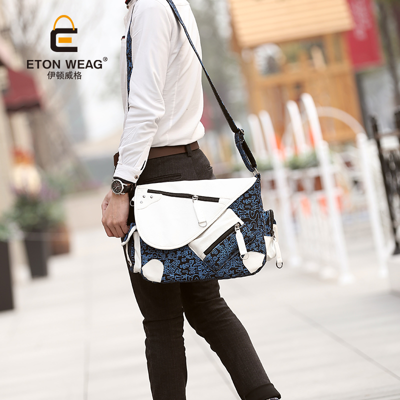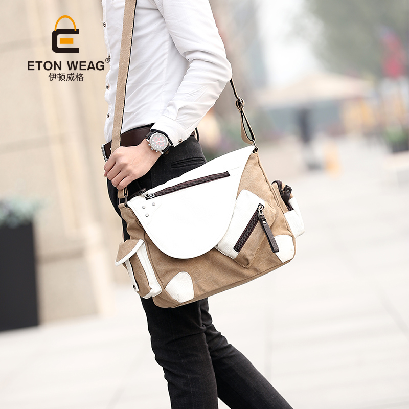 / 新款韓版男包潮單肩包男學生書包休閑帆布男士斜挎包郵差包