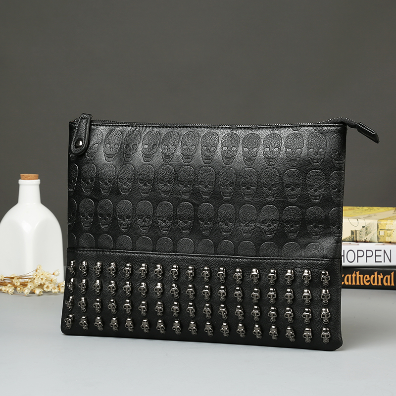 / 韓版鬼頭手拿包骷髏手抓手包單肩包文件包男手拿包鉚釘信封包潮